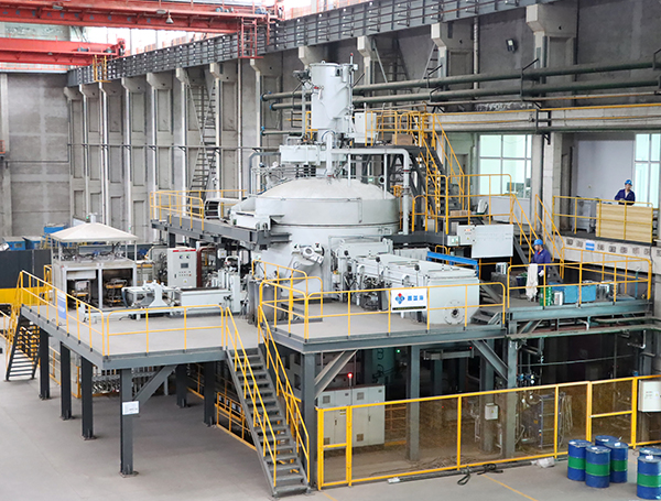真空感應熔煉爐(VIM)在真空條件下利用中頻感應加熱原理使金屬熔化的真空冶煉成套設備,主要由熔煉室、鑄錠室、流槽室、上加料室、合金加料室、側加料室、真空系統、電源系統、液壓系統、氣動系統、冷卻水系統等組成,設備容量在0.025-30T之間,通常0.025-0.5T為單腔室周期性爐,1T-30T為多腔室半連續爐。按熔煉材料類型劃分,真空感應熔煉爐可分為母合金熔煉爐和變形合金熔煉爐;按爐子類型劃分,真空感應熔煉爐可分為周期爐和半連續爐。